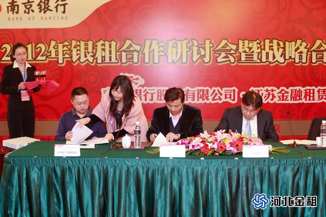 此次會議,我公司與南京銀行在綜合授信、資金融資、應收租賃款回購、聯合融資、理財資產推薦、客戶推薦、投行業務等方面達成了合作共識,為致力于建立長期、穩定、互利、共贏的全面戰略合作伙伴關系,不斷提升雙方的合作深度與廣度,公司總裁徐敏俊與南京銀行副行長禹志強在簽字儀式上簽署了《戰略合作協議》。