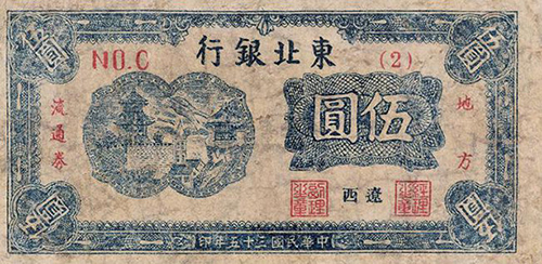 由于解放戰爭形勢需要,1947年5月,內蒙古自治區人民政府將東蒙銀行改組為內蒙古銀行,內蒙古銀行成立期間,共發行“內蒙古各旗縣公私款通用地方流通券”面值為200元、500元、2000元、5萬元四種,流通于內蒙古解放區。1948年6月又改為內蒙古人民銀行。1951年4月,內蒙古人民銀行改組為中國人民銀行內蒙古自治區分行。