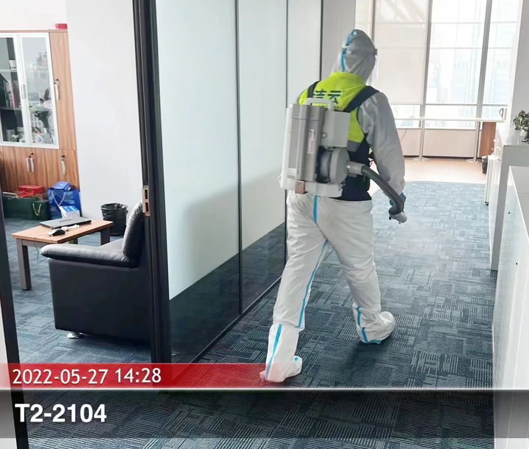 復工之前,對接物業方對辦公區域進行消殺,全面消毒,不留死角,讓同事們安心歸隊