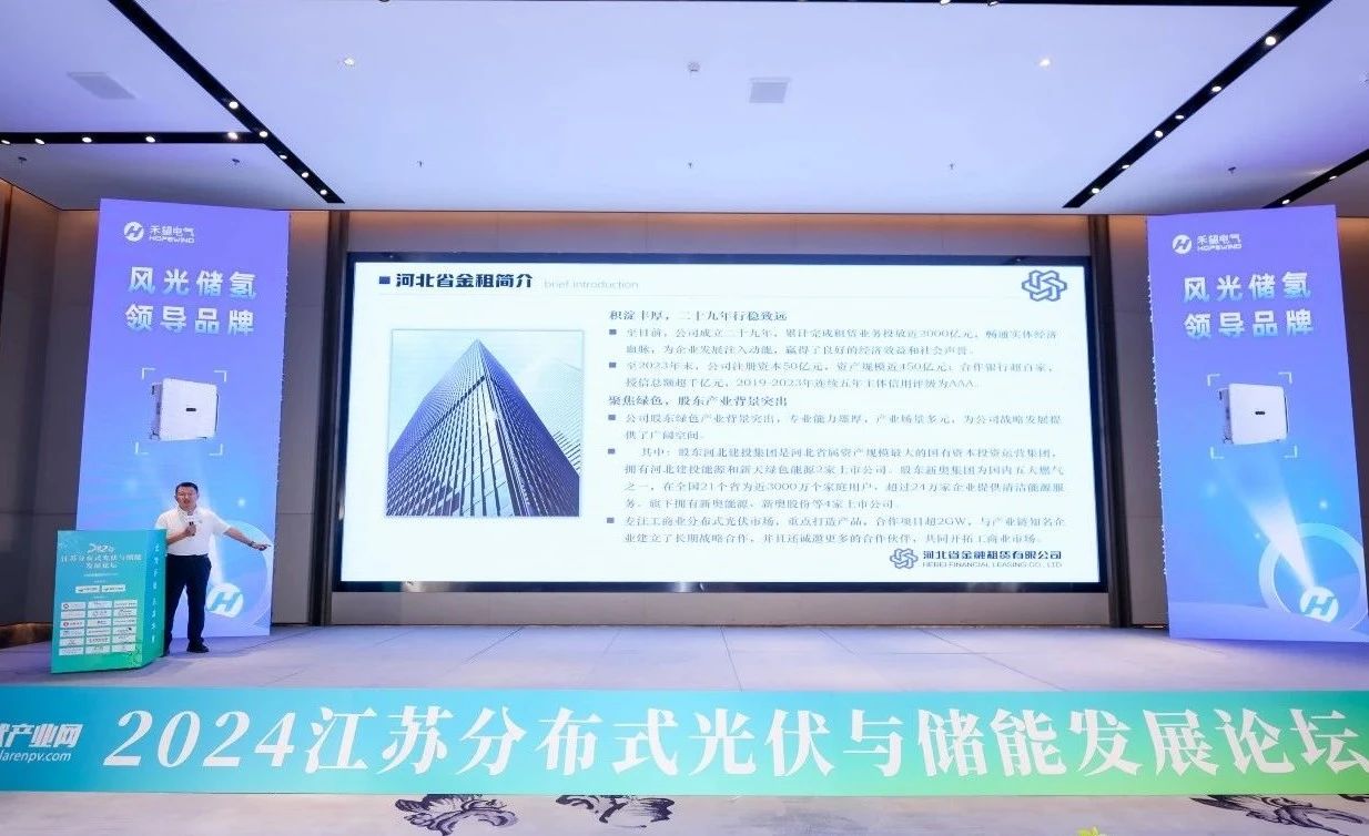 日前,2024年江蘇分布式光伏與儲能發展論壇在蘇州成功舉辦,河北金租參加此次論壇,與天合光能、晶科電力、阿特斯等行業伙伴共話清潔能源發展。河北金租“光易租”繼在川渝亮相后,此次宣介活動走進江蘇,為長三角區域分布式光伏行業發展貢獻智慧和力量。